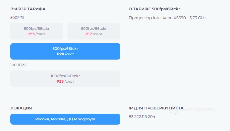 - 1 000 fps / 100 тикрейт (₽ 20 слот).