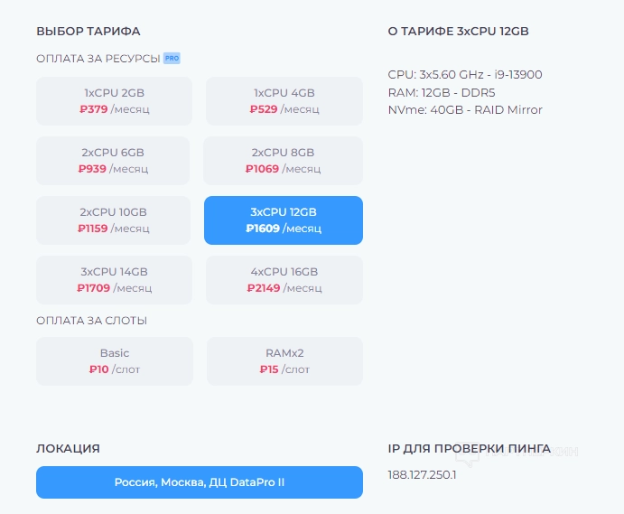 - 3xCPU 12 GB (₽1 609 в месяц);