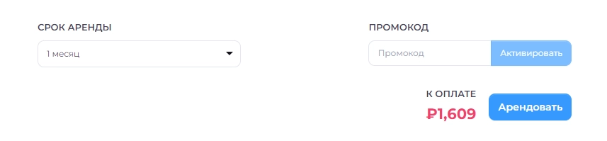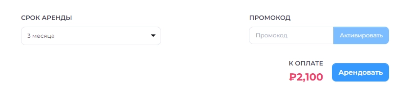 Далее пользователю нужно выбрать срок аренды (от 1 до 3 месяцев), ввести промокод (при наличии) и нажать кнопку «Арендовать».