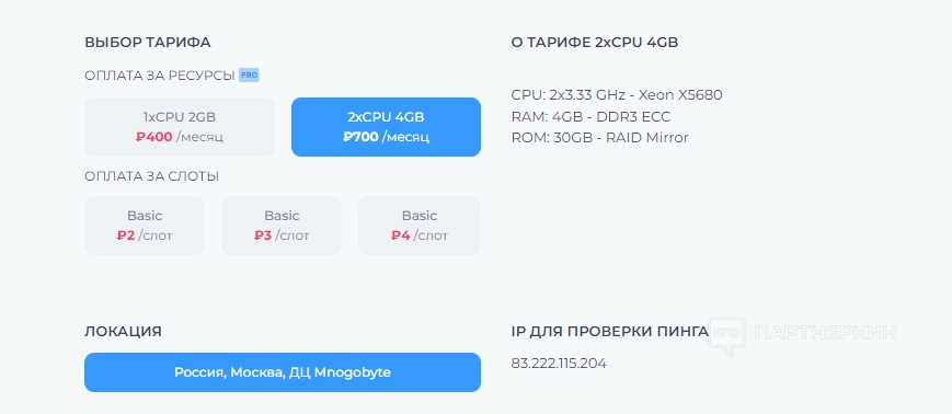- Basic (₽ 4 за слот). Процессор Intel Xeon X5690 — 3.73 GHz.