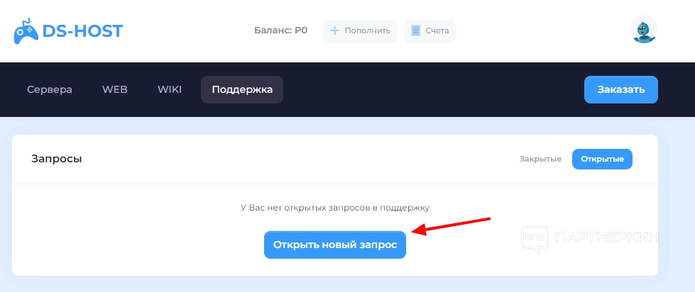 Если у пользователя есть вопрос, он может связаться со специалистами в разделе «Поддержка». Здесь необходимо нажать кнопку «Открыть новый запрос».