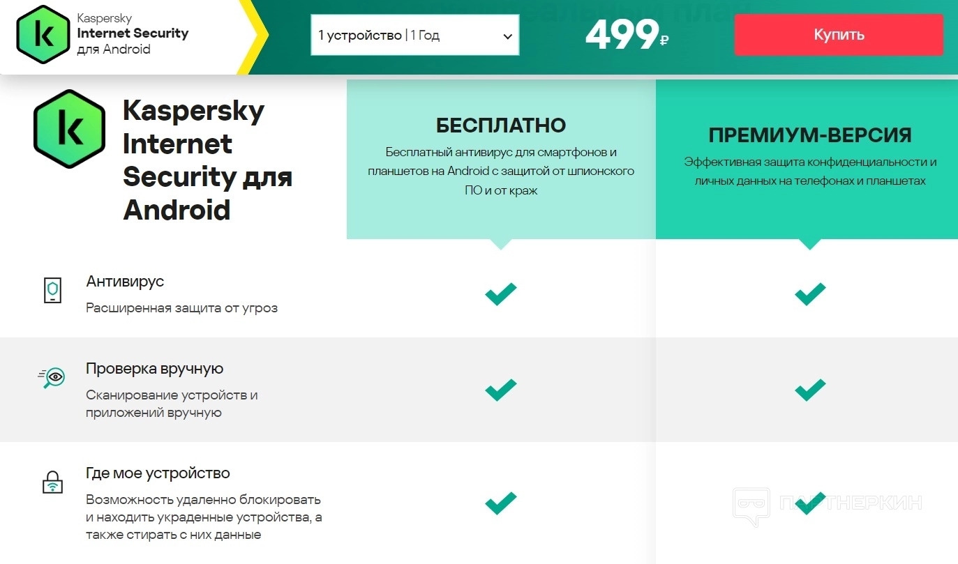 Бесплатное решение предоставляется на базовом бесплатном тарифе Kaspersky Internet Security для Android. Это антивирус для устройств на Android, который защищает от шпионского софта.