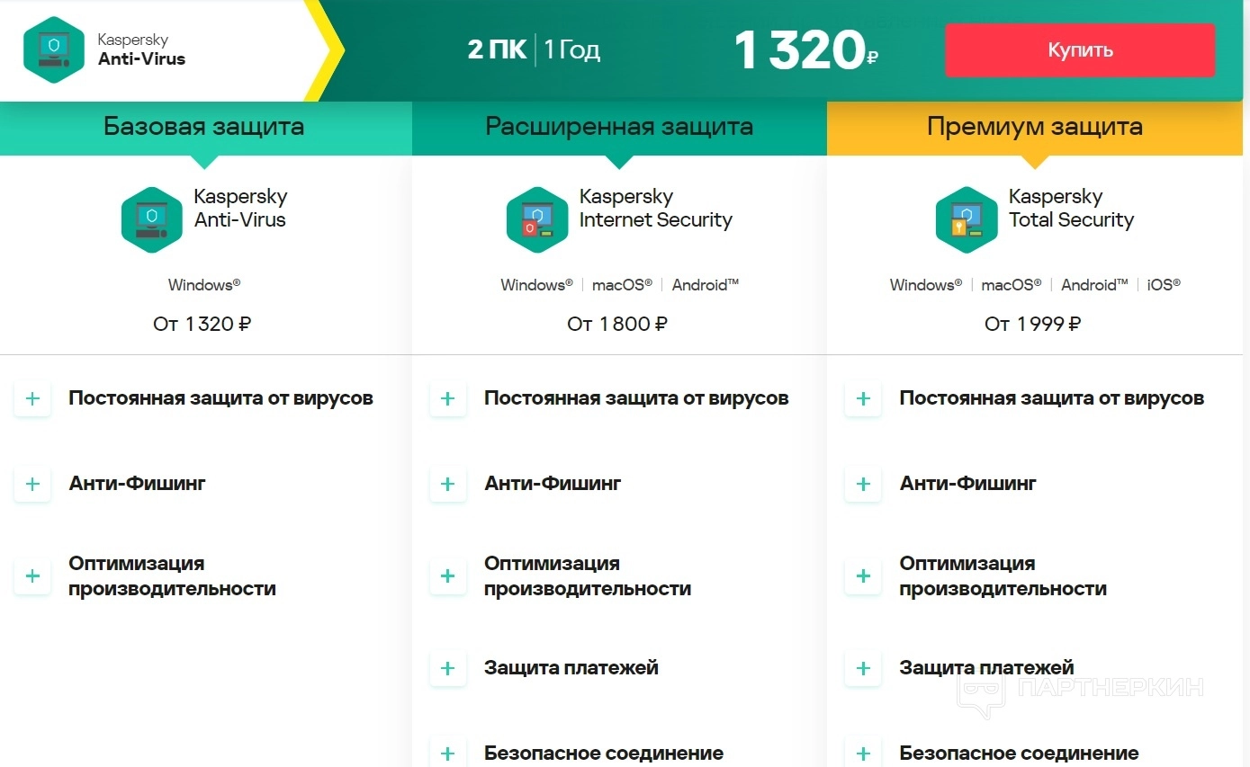 - Премиум защита. Усиленная защита для Windows, MacOS, Android, iOS, от 1 999 руб. в год.