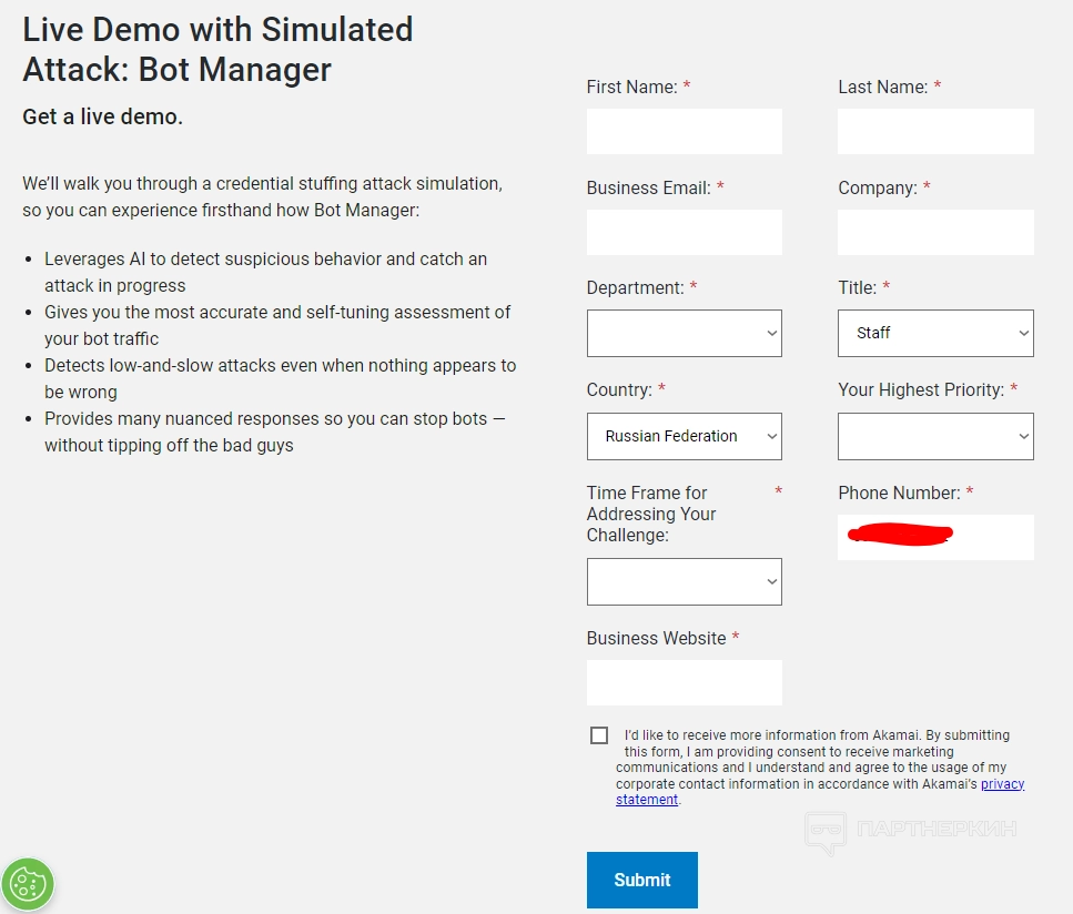 После заполнения данных необходимо принять пользовательское соглашение и нажать кнопку «Submit».