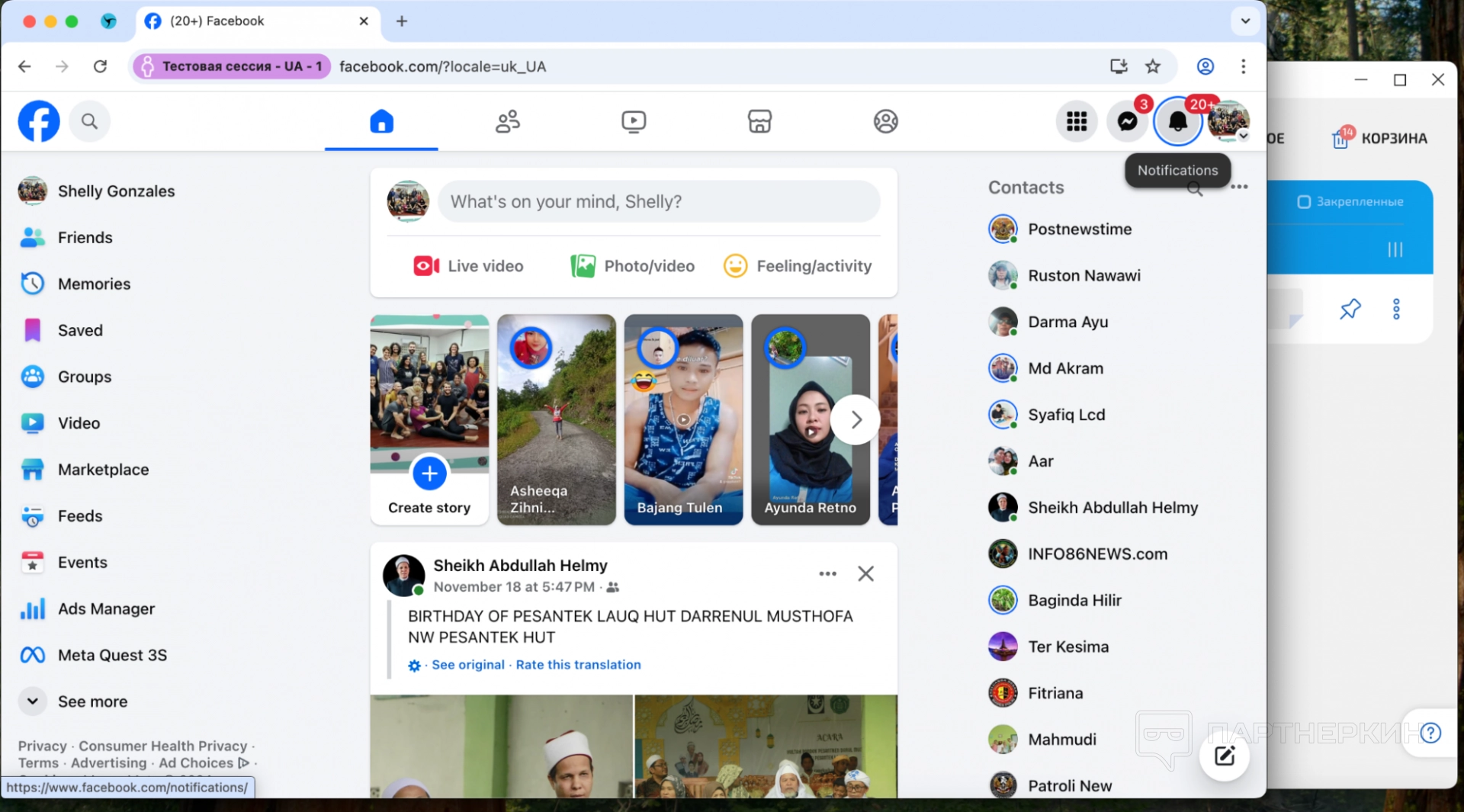 - Переходим в Facebook, Cookie корректно импортировались, поэтому попадаем сразу в аккаунт.