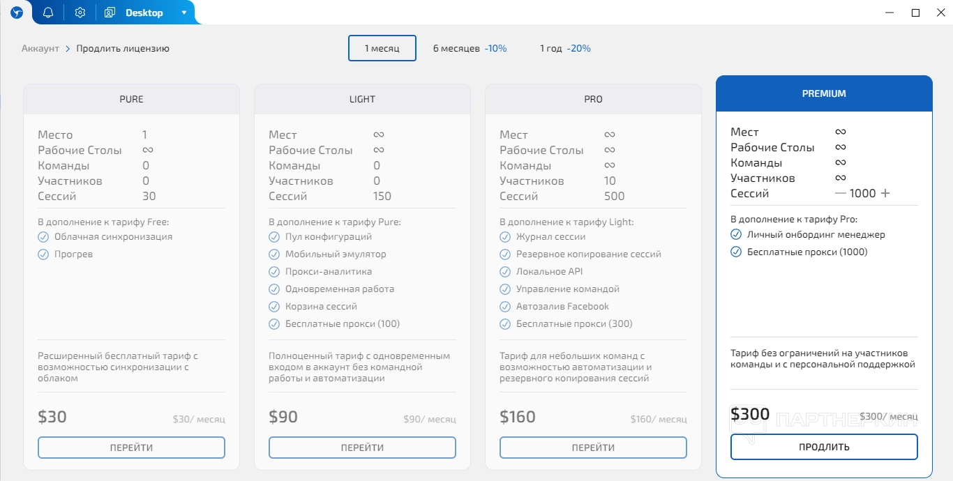 Браузер предлагает 4 варианта подписки: Pure , Light , Pro , Premium . Цены сравниваем за месяц без учета скидок.