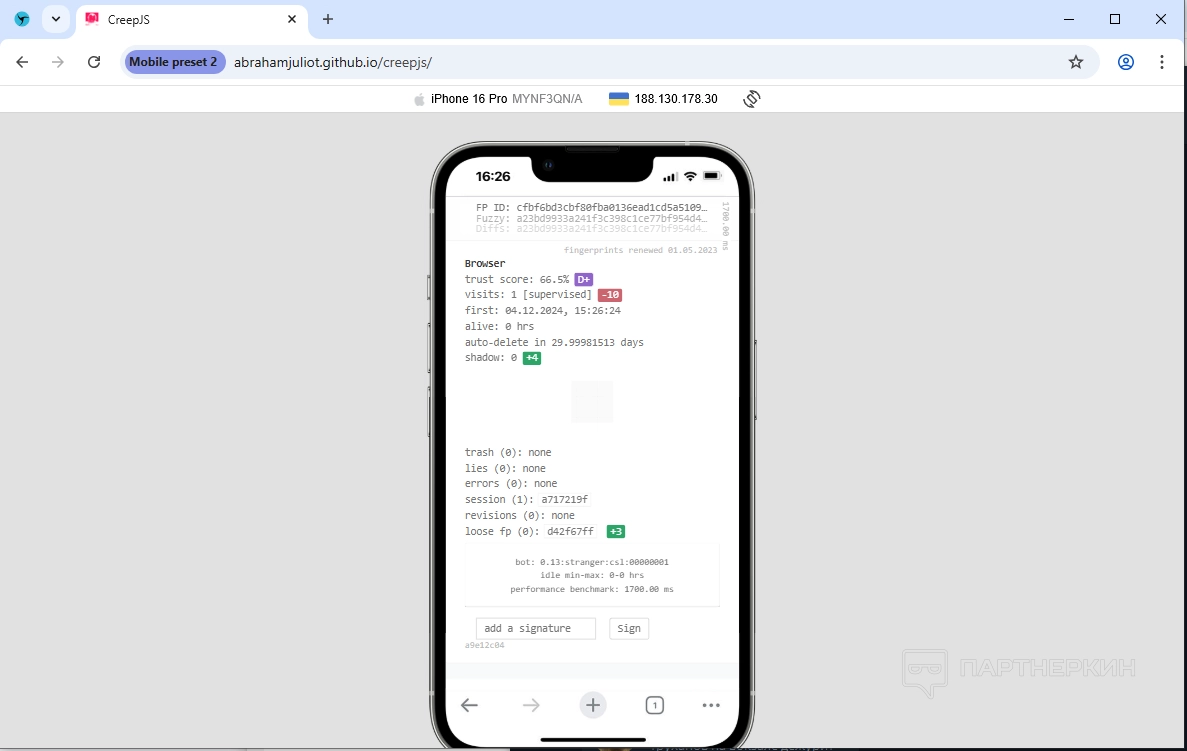 Отдельно стоит упомянуть отпечатки мобильных устройств. На данный момент это самая качественная подмена мобильных отпечатков.