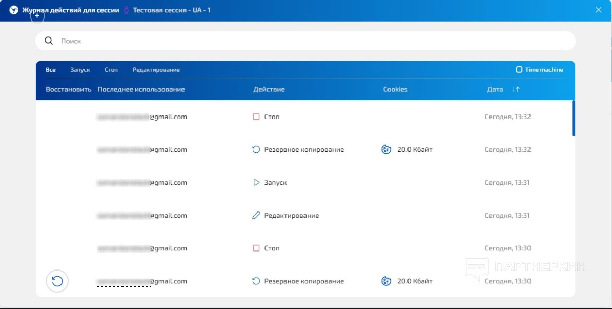 Что касается контроля работы, в браузере есть «журнал действий» для каждой сессии, что позволяет отслеживать активность нужных профилей: