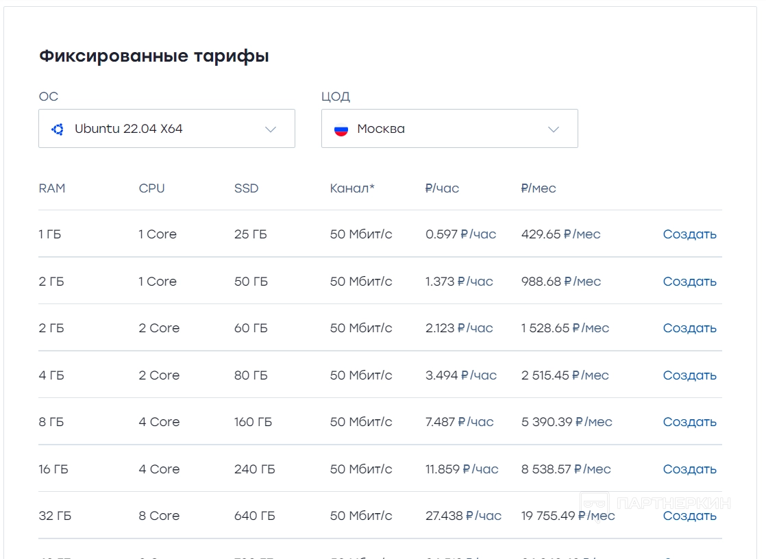 Особенность этого пакета заключается в определенности цен по категориям в зависимости от конфигураций, которые предоставляет компания. То есть, для оплаты 4 евро в месяц можно воспользоваться: 1 основным процессором 1 ГБ оперативной памяти, 50 Мбит/с и твердотельного накопителя 25GB. Максимально возможная конфигурация аппаратных средств включает в себя: 8 ядер CPU, 48GB RAM, 720GB SSD и полоса пропускания 50 Мбит/с. Такая конфигурация стоит 162,4 евро в месяц или 0,226 евро в час.