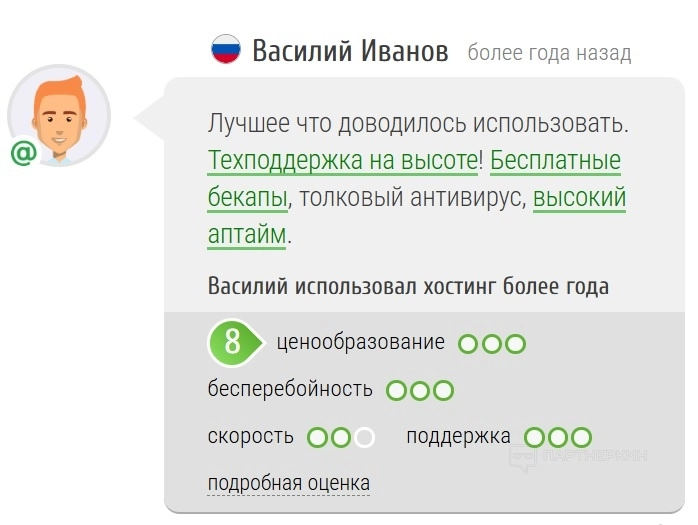 Ещё хостинг-провайдер получает высокие оценки за безопасность и хороший аптайм: