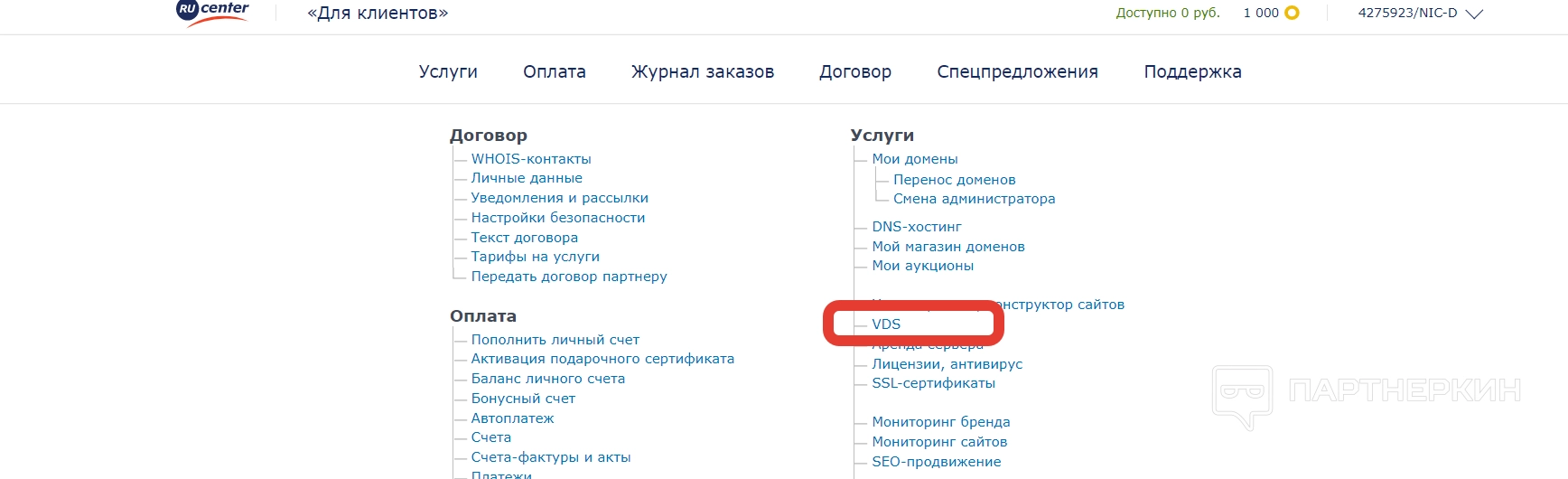 VDS — в этом разделе можно заказать виртуальный сервер.