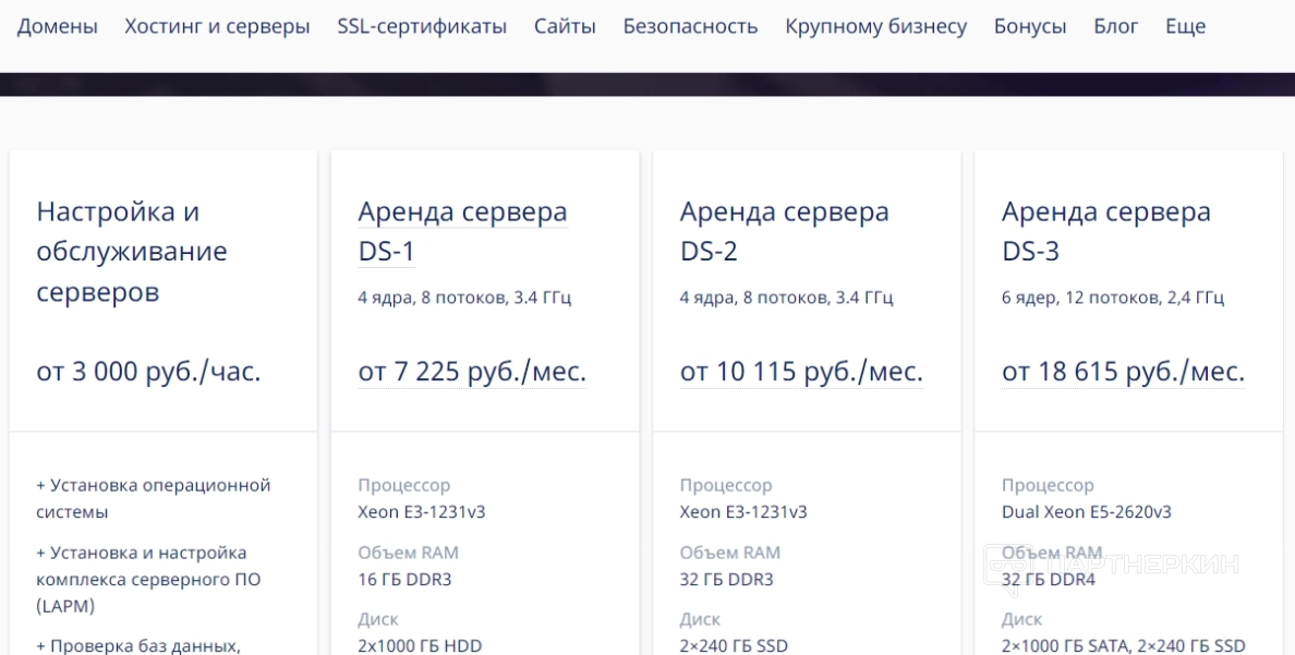 В каждом случае нужно заплатить за пакет. Например, в разделе с заказом хостинга можно заказать виртуальный хостинг, CMS-хостинг, виртуальный сервер VDS или арендовать выделенный сервер.