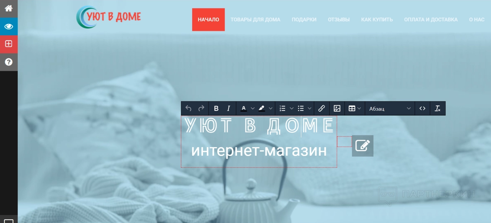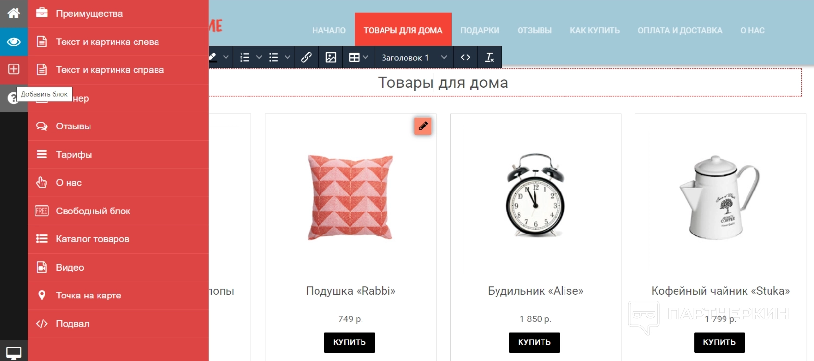 В редакторе можно изменять все описания и характеристики, главные изображения, а также порядок расположения товаров. Можно также добавлять новые разделы и страницы в редакторе с левой стороны.