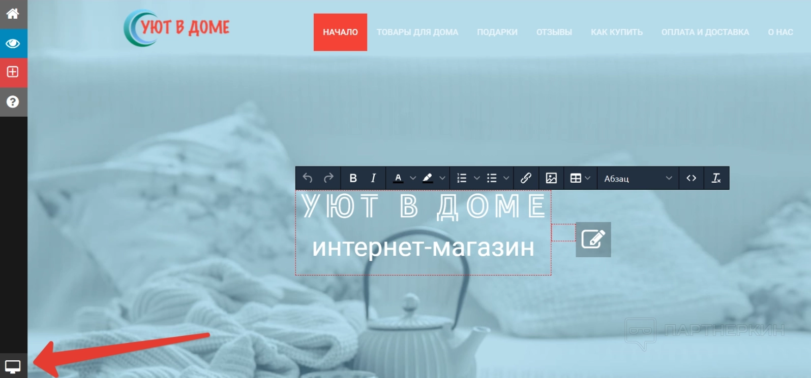 При работе можно переключаться между версиями, чтобы следить за отображением элементов не только на десктопе, но и на мобильном экране. Для этого нужно использовать кнопку внизу экрана.