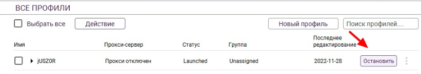Браузер работает. Дальнейшие действия пользователь может совершать по своему усмотрению. Чтобы отключить аккаунт, необходимо в разделе «Управление профилями» нажать «остановить».