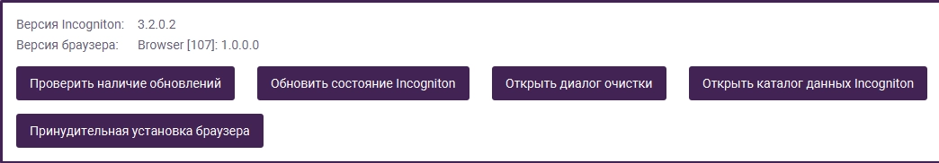 Incognition. При нажатии на эту вкладку произойдет перезапуск программы. Функция напоминает перезагрузку страницы в обычном браузере.