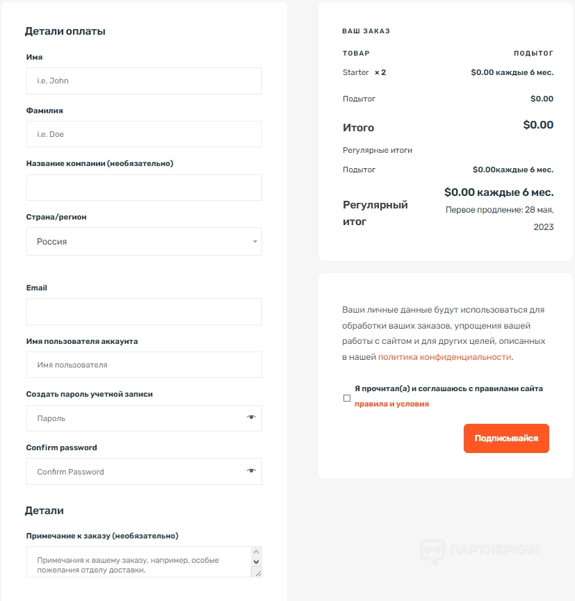 Указать данные со скриншота, поставить галочку «Я прочитал(а) и соглашаюсь с правилами сайта» и нажать «Подписывайся».