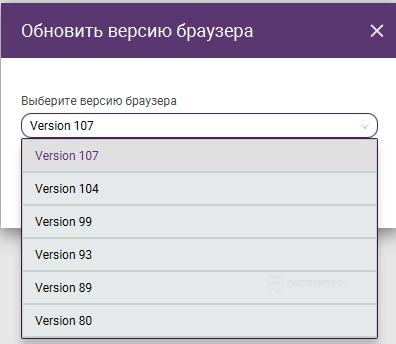 - Принудительная установка браузера. При нажатии откроется окно, где сервис предложит выбрать версию браузера и обновить ее.