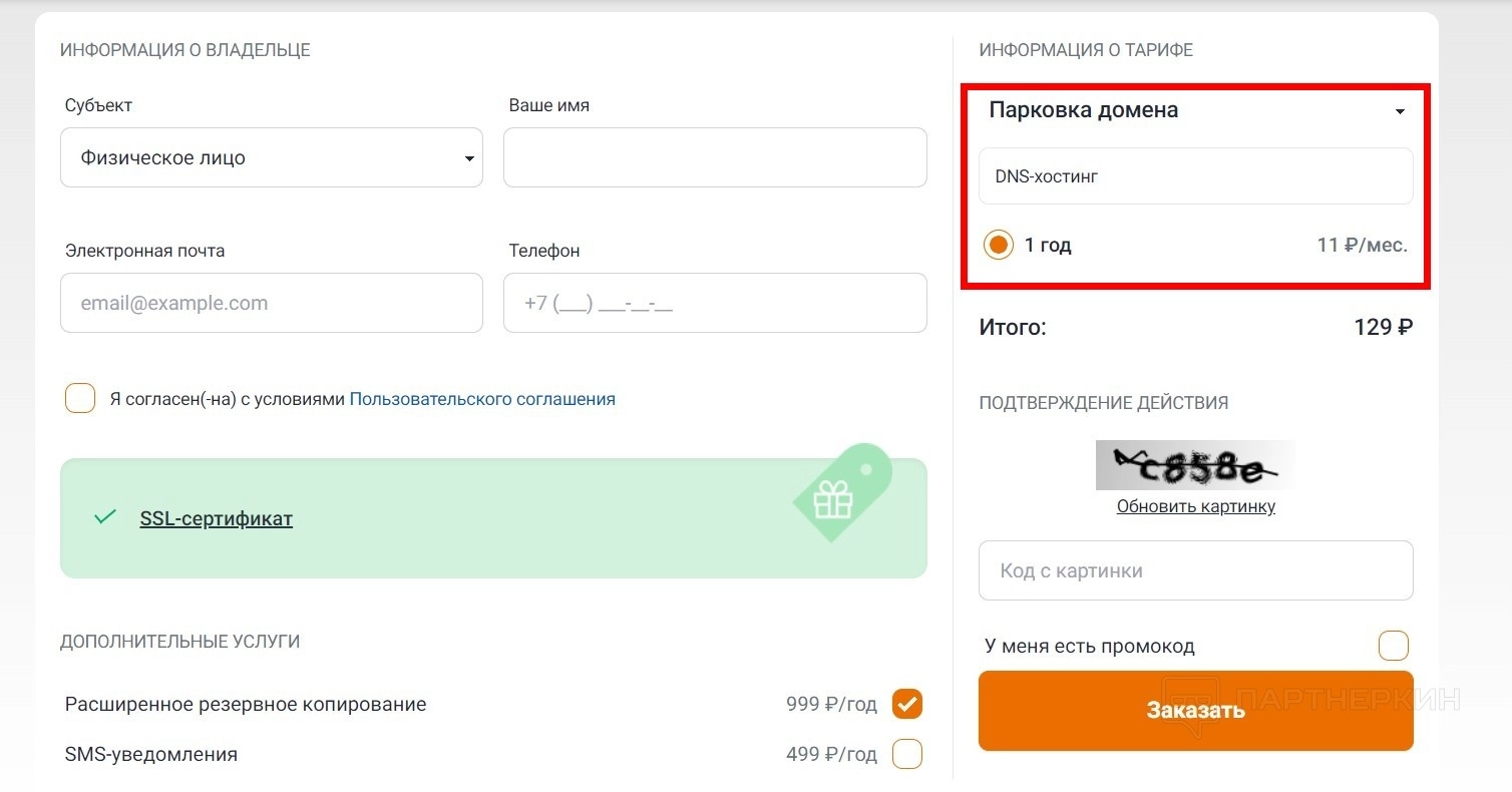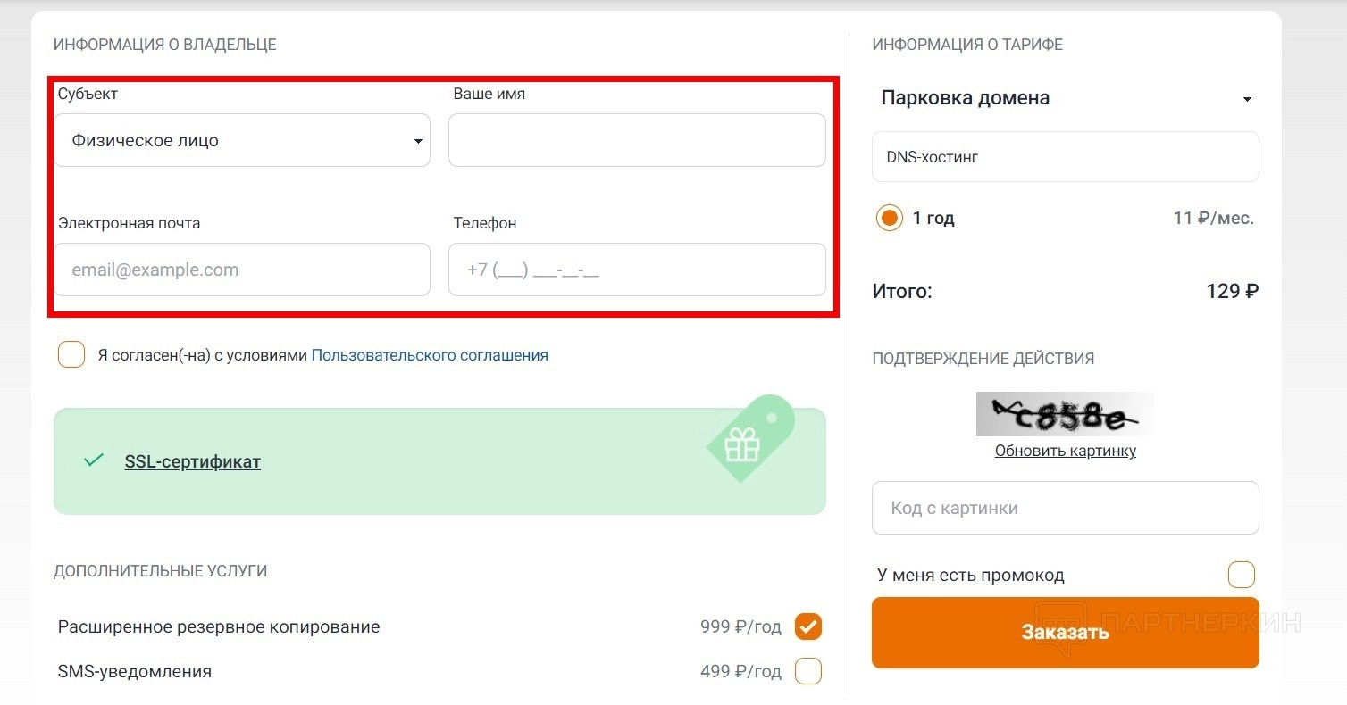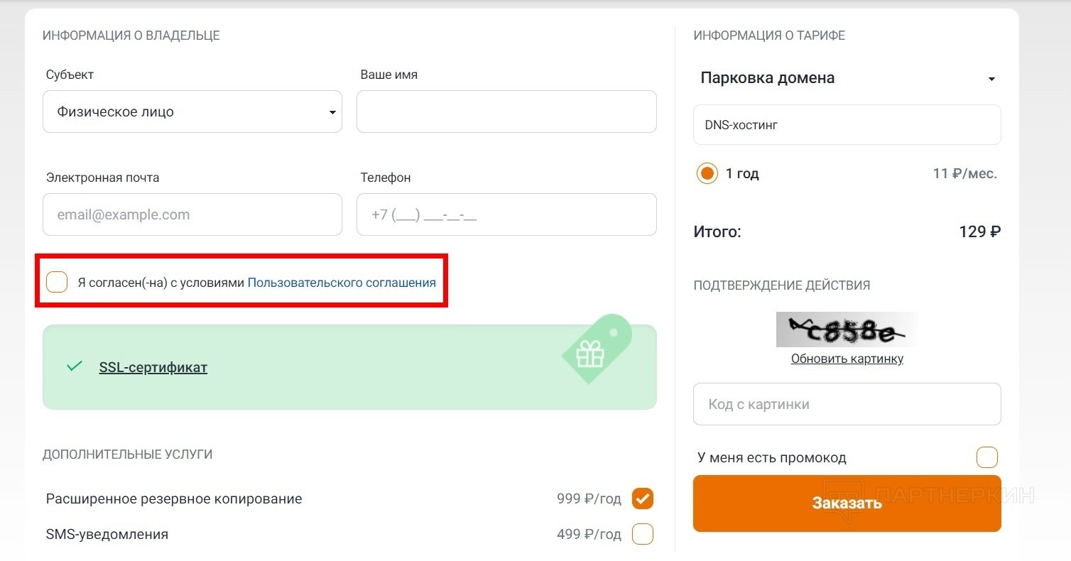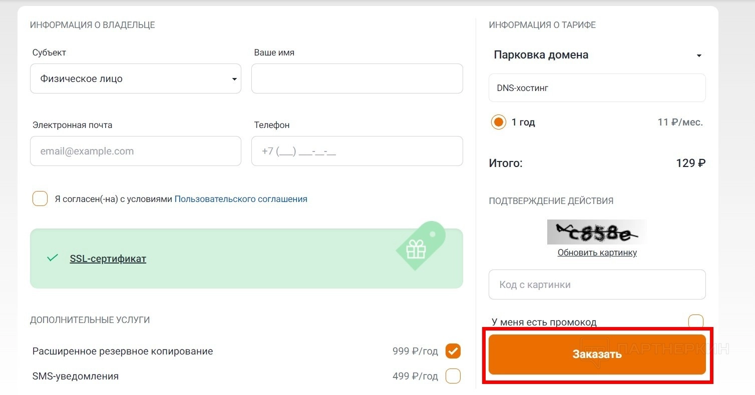 - Нажмите на кнопку «Заказать».