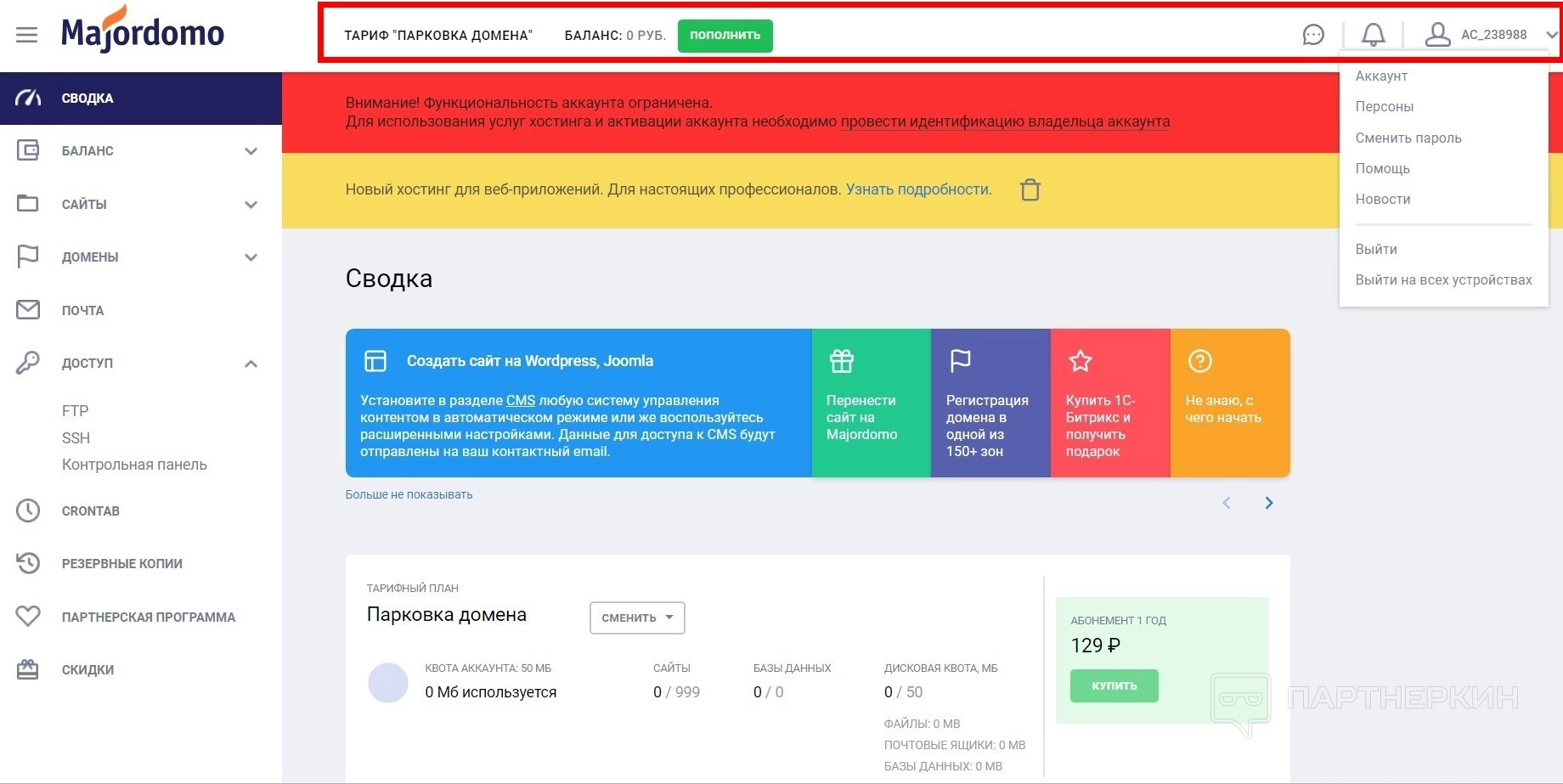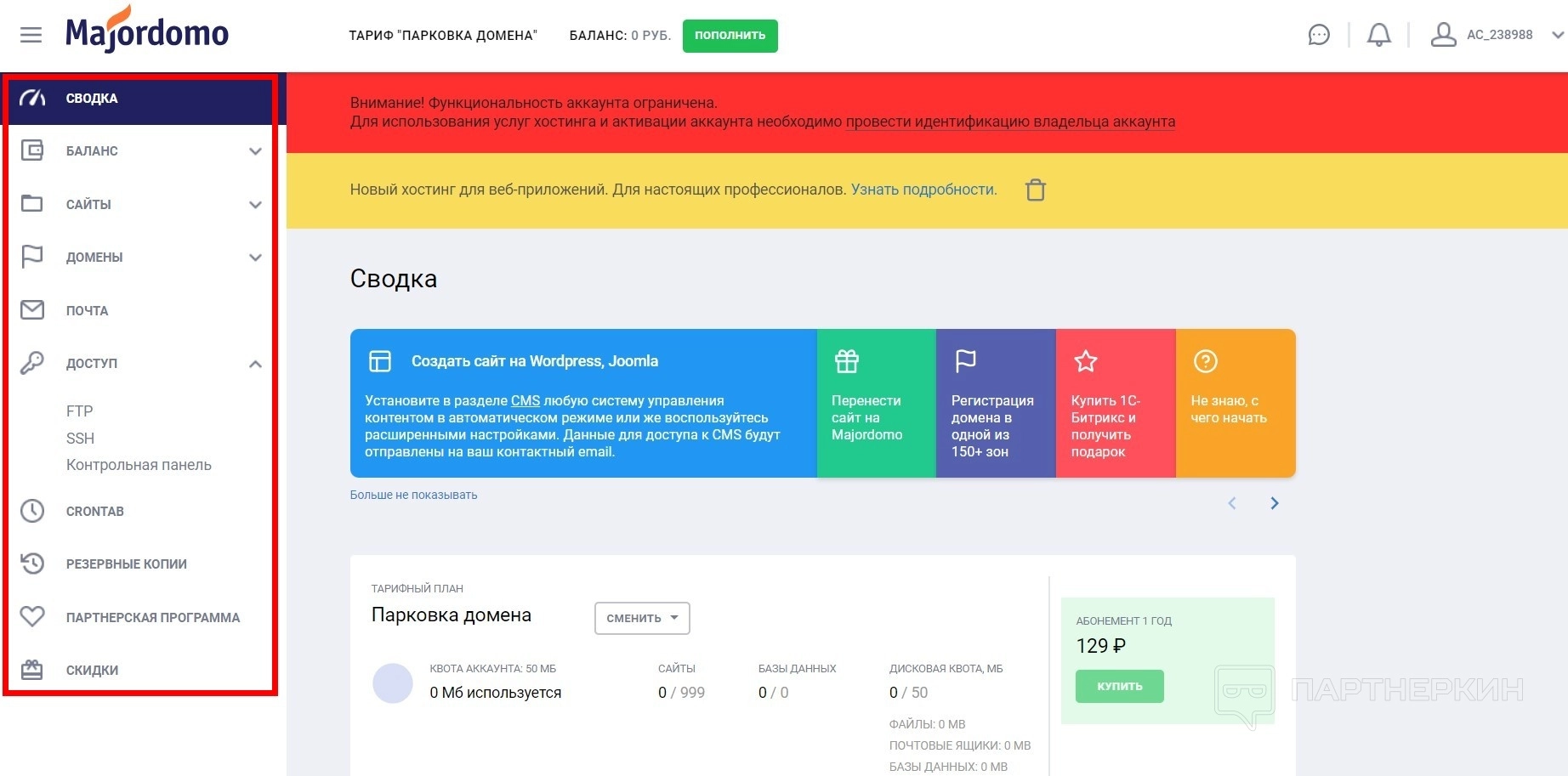 Система сформирует учетную запись. На почту придут данные для входа в панель управления. Станут доступны все инструменты. Только функциональность будет ограничена. Нужно будет пройти идентификацию владельца аккаунта любым удобным способом.