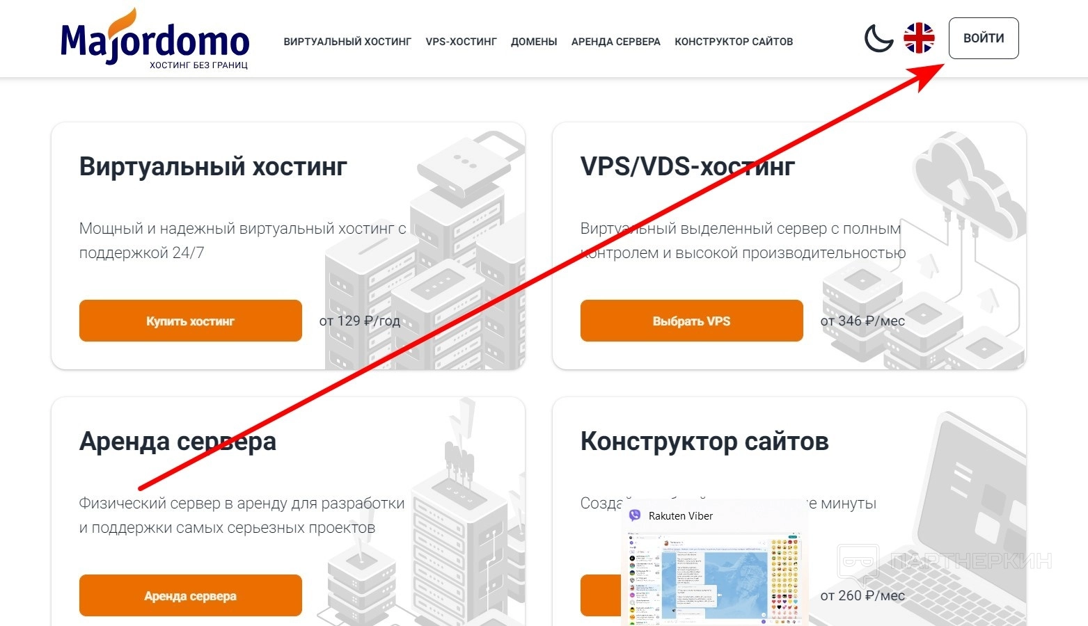 - На главной странице нажмите на кнопку «Войти».