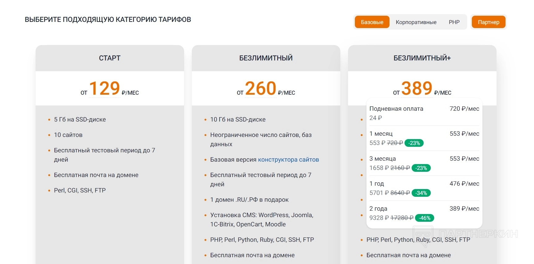 Каждый месяц происходит оплата услуг хостинга. В любом случае, стоимость будет зависеть от выбора тарифного плана. Так, например, цена за VPS хостинг находится в диапазоне ₽34 636-12 246. Ориентировочная стоимость аренды виртуального хостинга начинается от ₽129. В случае покупки трехмесячной подписки на домен компания предоставляет его бесплатно. Таким образом, он будет стоить в пределах ₽149 за год.