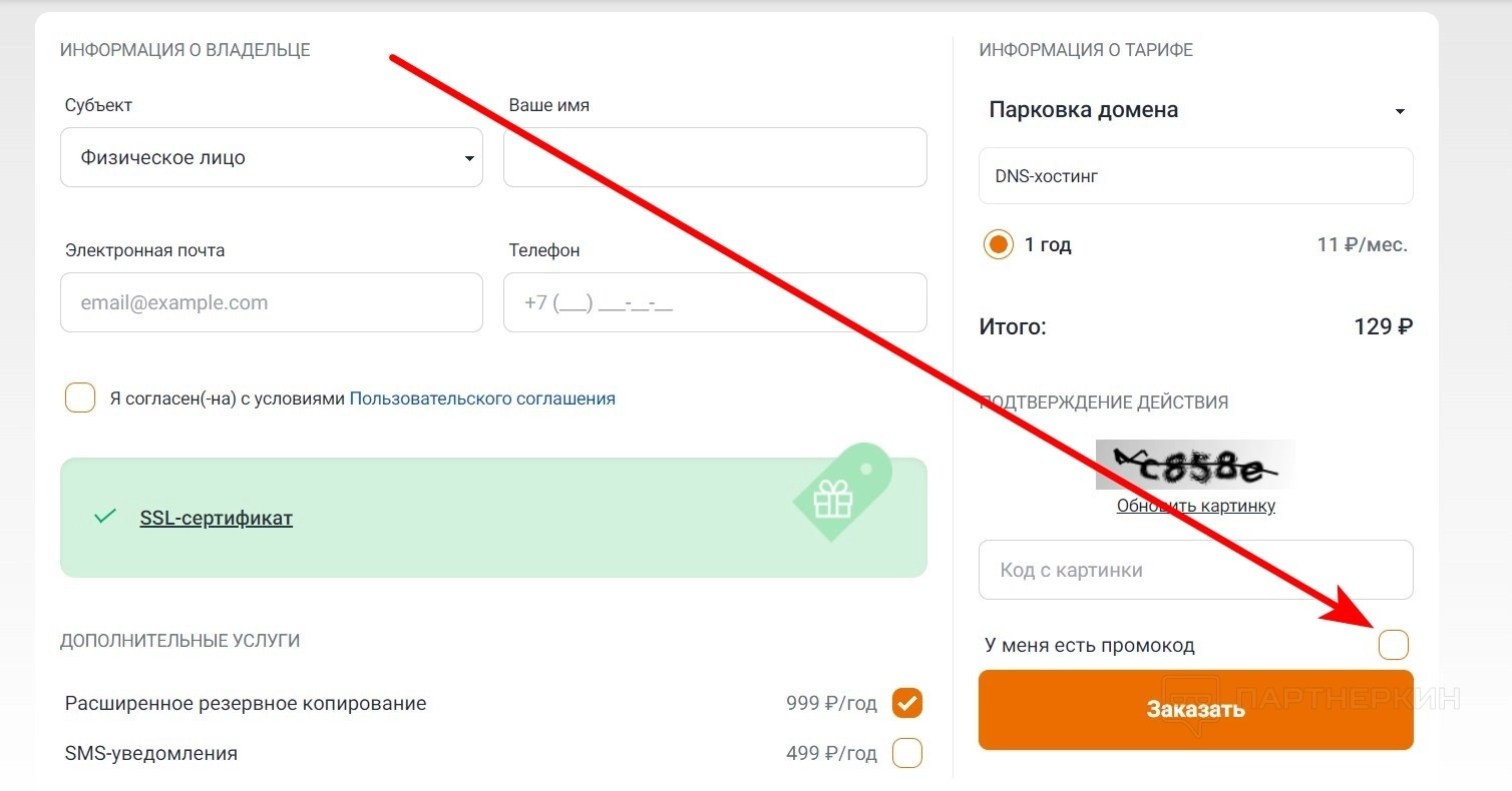 - По желанию активируйте промокод.