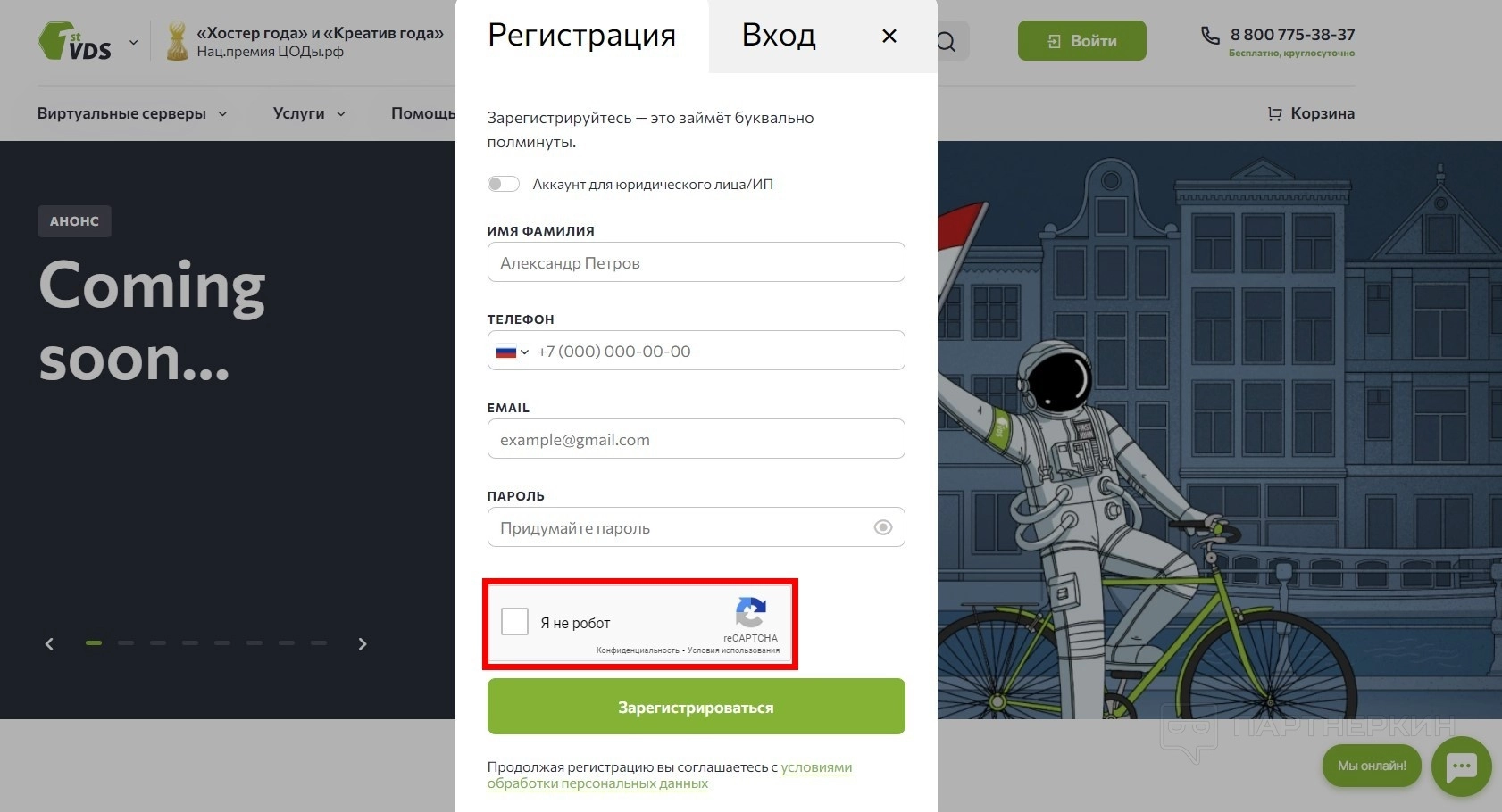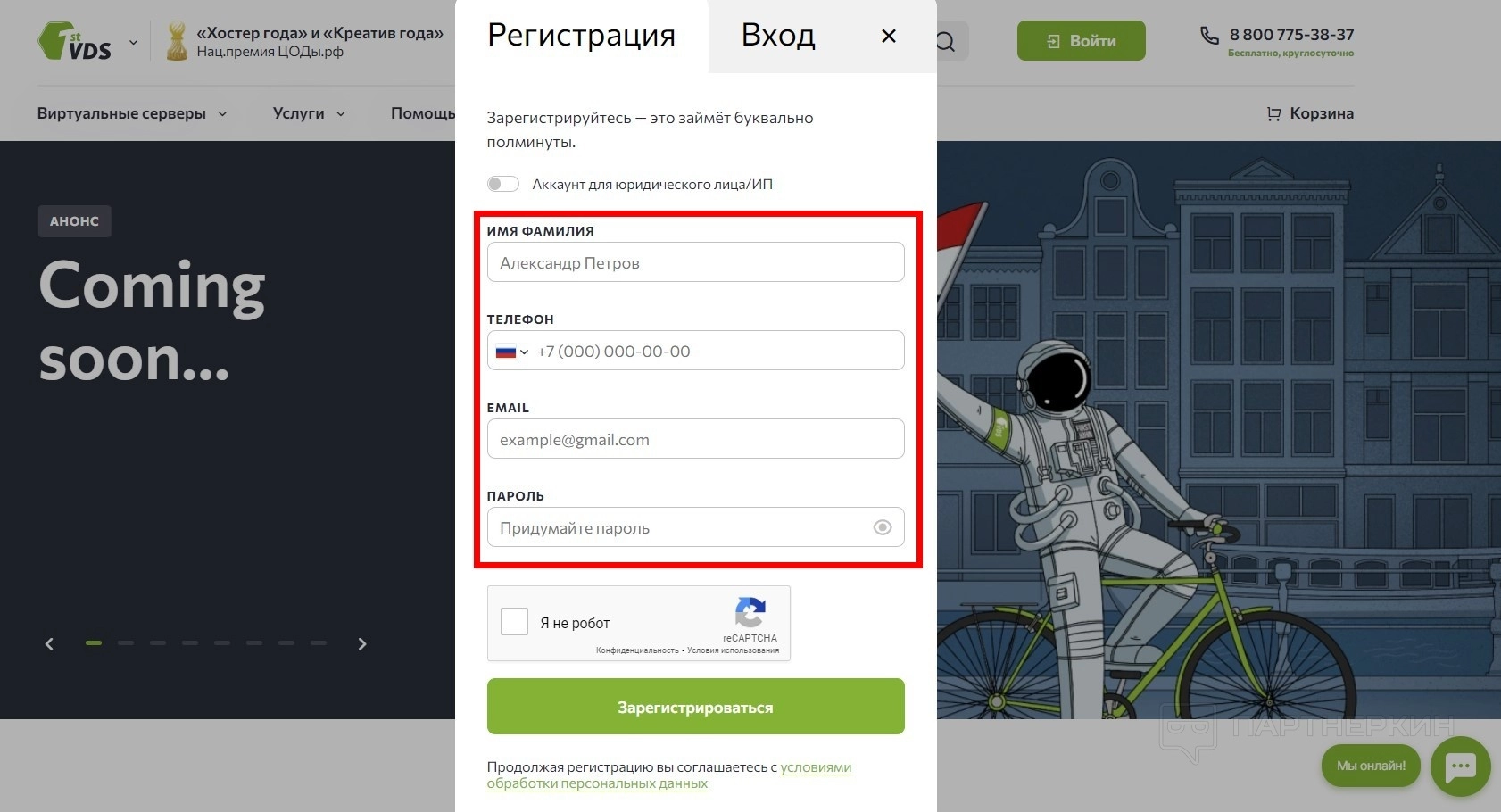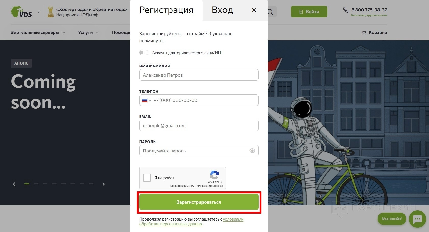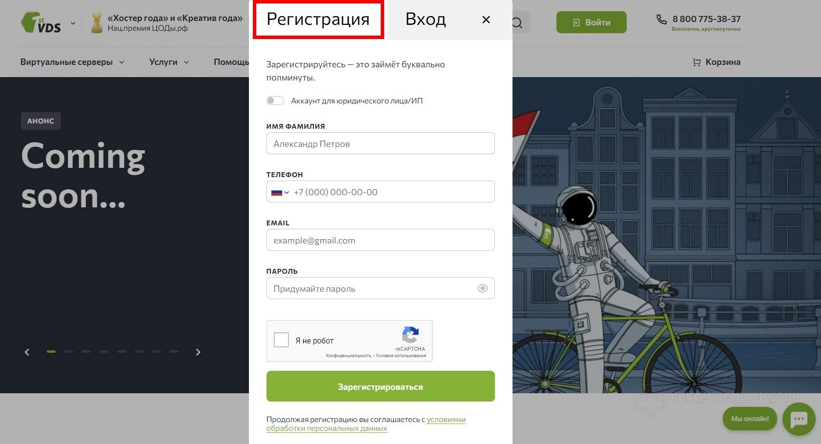 Для работы с хостинг-провайдером нужна верификация почты и номера телефона. Без регистрации панель управления работает в режиме демо-версии. То есть арендовать виртуальные хостинги не получиться.