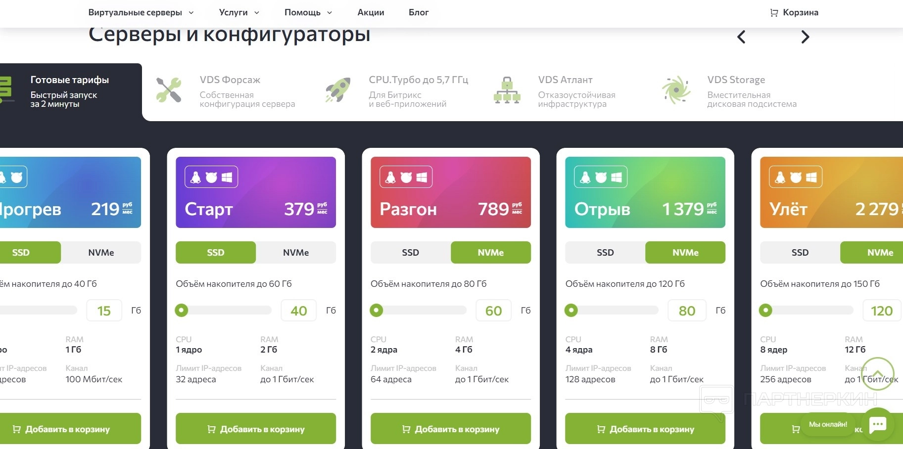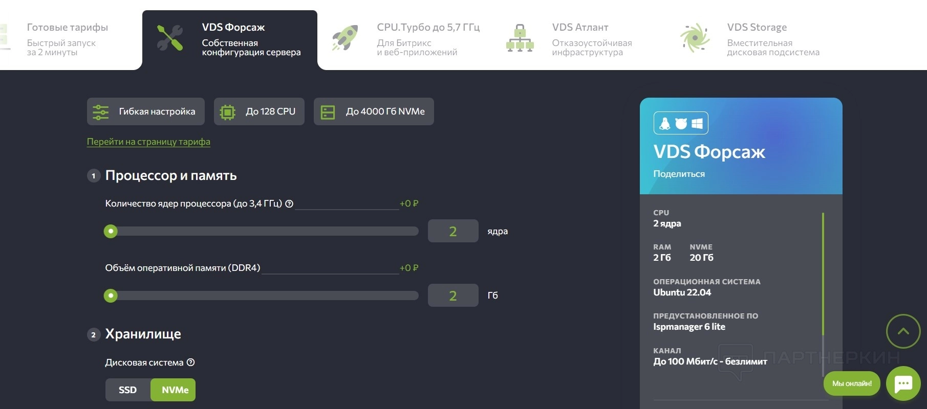 - VDS Форсаж. Создание персональной конфигурации серверной части. Можно выбирать оптимальное количество ресурсов и соответствовать потребностям проекта.