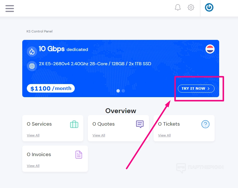 После регистрации можно сразу же приступить к выбору и настройке серверов. Для этого в личном кабинете необходимо нажать на кнопку «Попробовать Сейчас»: