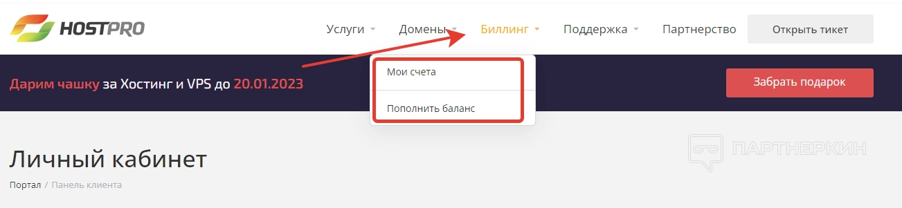 Протестировать функционала или воспользоваться услугами сервиса Hostpro удастся только после регистрации аккаунта. В первую очередь заходим на официальный сайт и ищем кнопку «Панель клиента» в верхнем правом углу.
