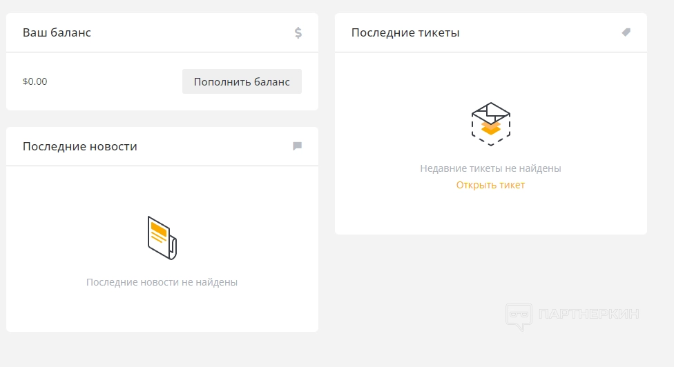 В нижней части экрана можно увидеть свой баланс, обработанные тикеты и последние новости сервиса.