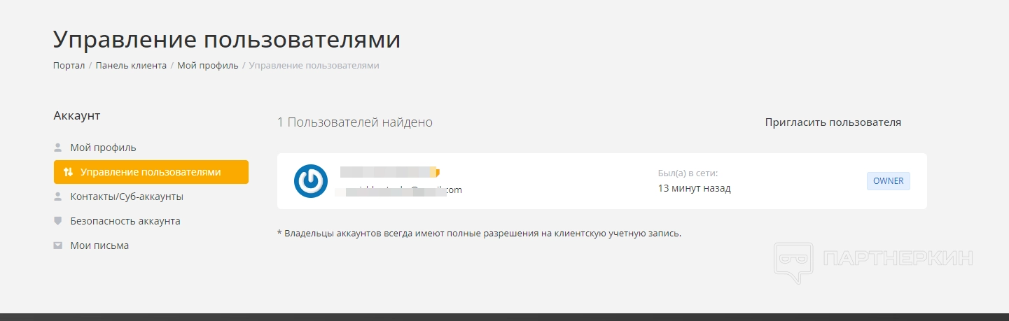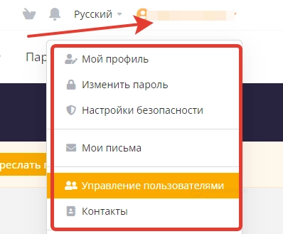 - управление пользователями — с помощью этого раздела выдается доступ к аккаунту другим пользователям;