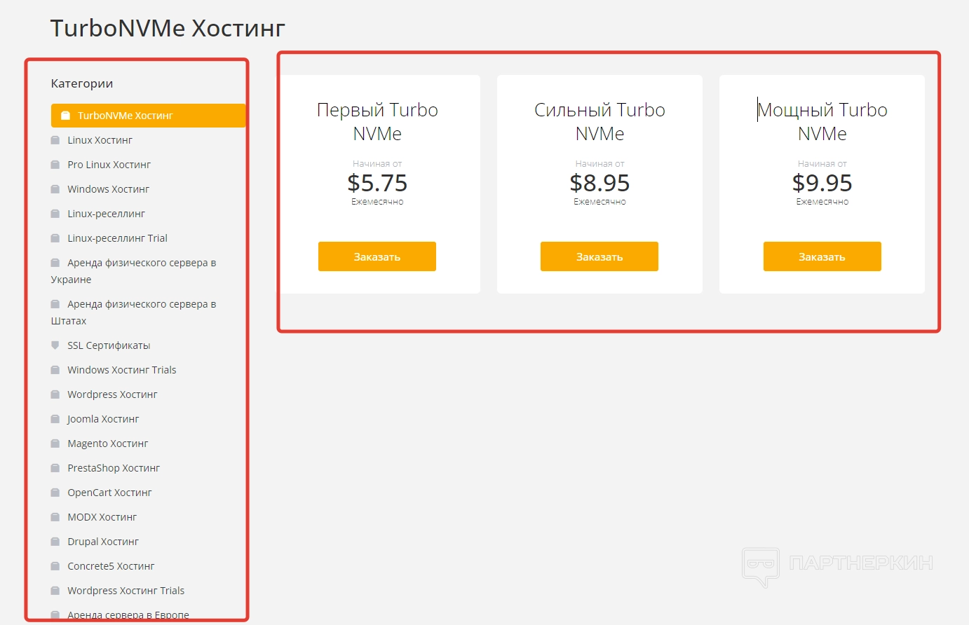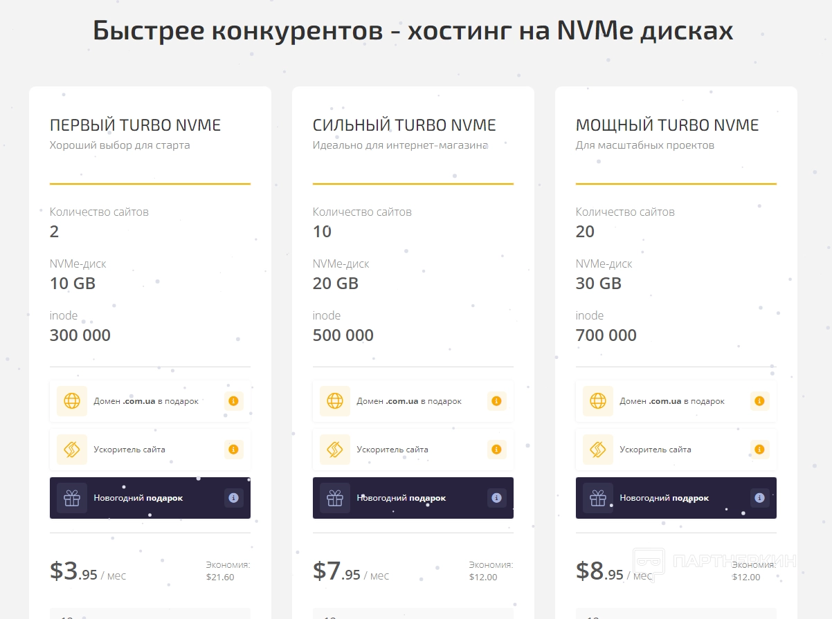 - Супербыстрый хостинг. Здесь можно заказать один из тарифов по хостингу на NVMe дисках. В верхней части экрана расписана стоимость и характеристики тарифов. Чуть ниже можно заказать дополнительные услуги (Панель управления cPanel, выделенный IP). Каждый тариф имеет 5-дневный тестовый период.