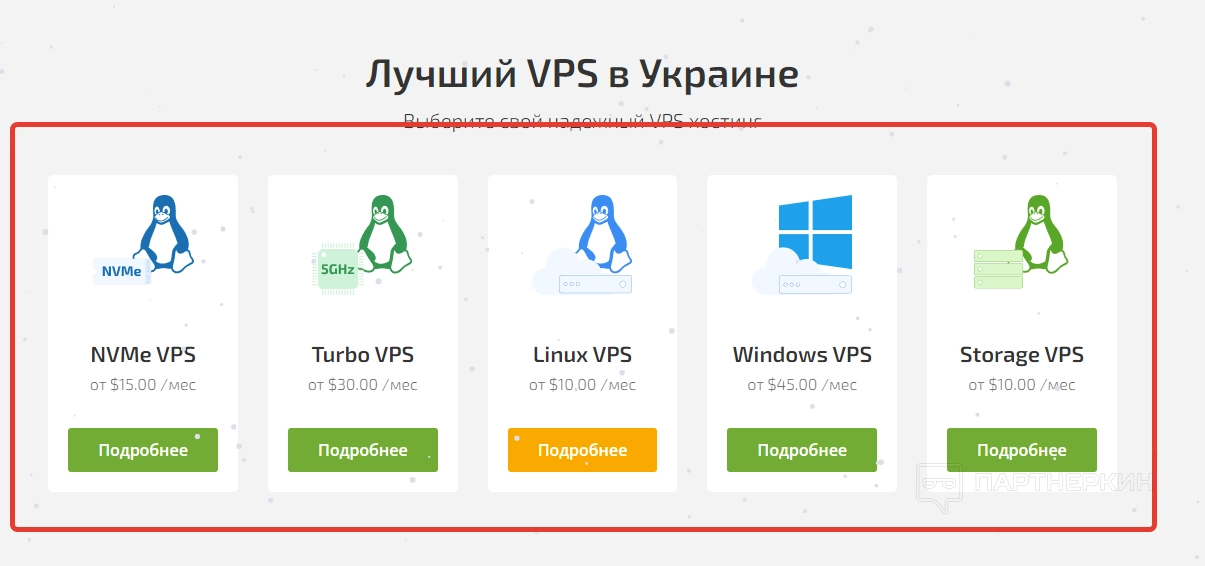 - Выбрать VPS . В этом вкладке пользователь найдет все VPS, предлагаемые сервисом. Стоит отметить, что для каждого из предлагаемых вариантов есть собственная тарифная сетка.