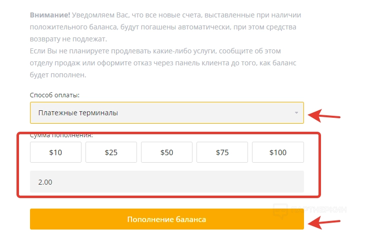 В первой вкладке отображаются счет пользователя. Вторая вкладка нужна для того, чтобы пополнять баланс. При переводе денег владелец аккаунта может выбрать более удобный способ и указать сумму пополнения. На момент написания статьи сервис принимал EUR, USD и UAH.