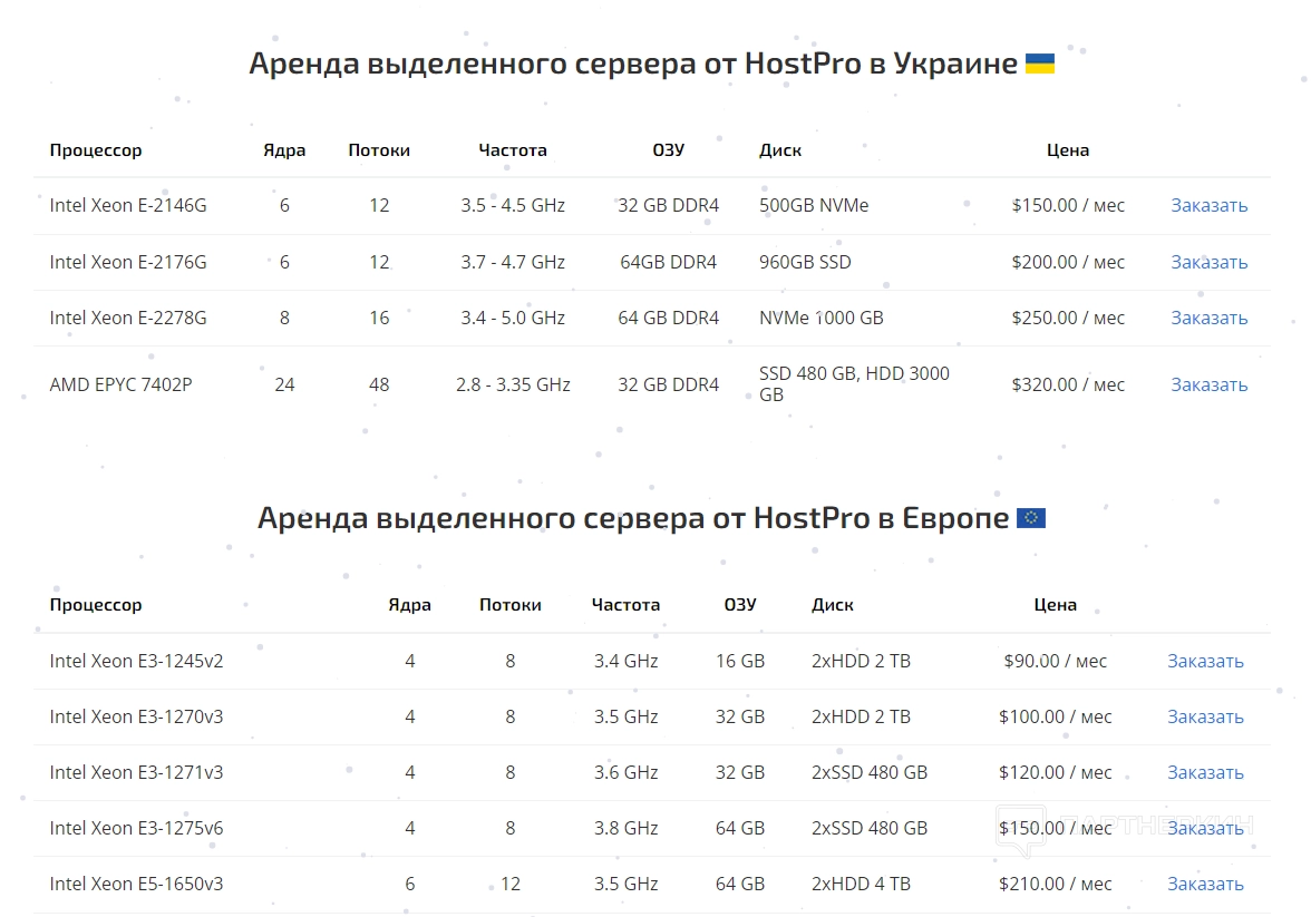 - Аренда выделенного сервера. Сервис предоставляет в аренду сервера от Украины, стран ЕС и США. Также здесь можно подключить дополнительные услуги (дополнительный IP, панель управления, нестандартные настройки сервера и другие).