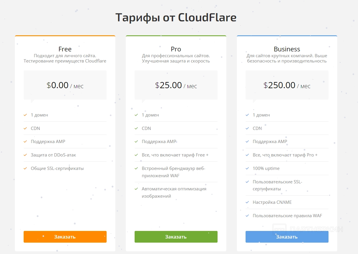 - Защита от DDos-атак. Три тарифных плана для защиты и ускорения веб-сайтов.