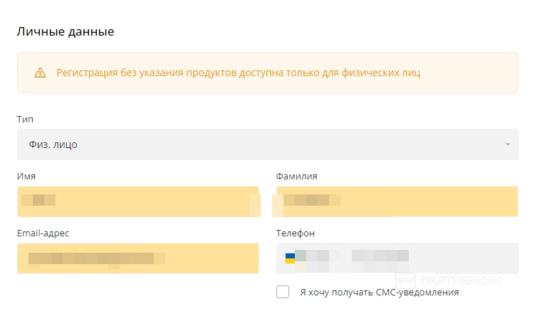 В процессе регистрации потребуется ввести следующие данные: