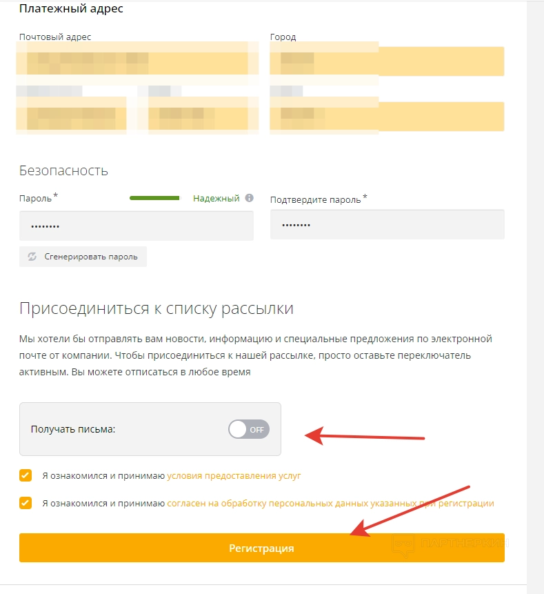 Соглашаемся с условиями пользования и жмем на кнопку «Регистрации». При необходимости можно включить или отключить рассылку писем на почту.