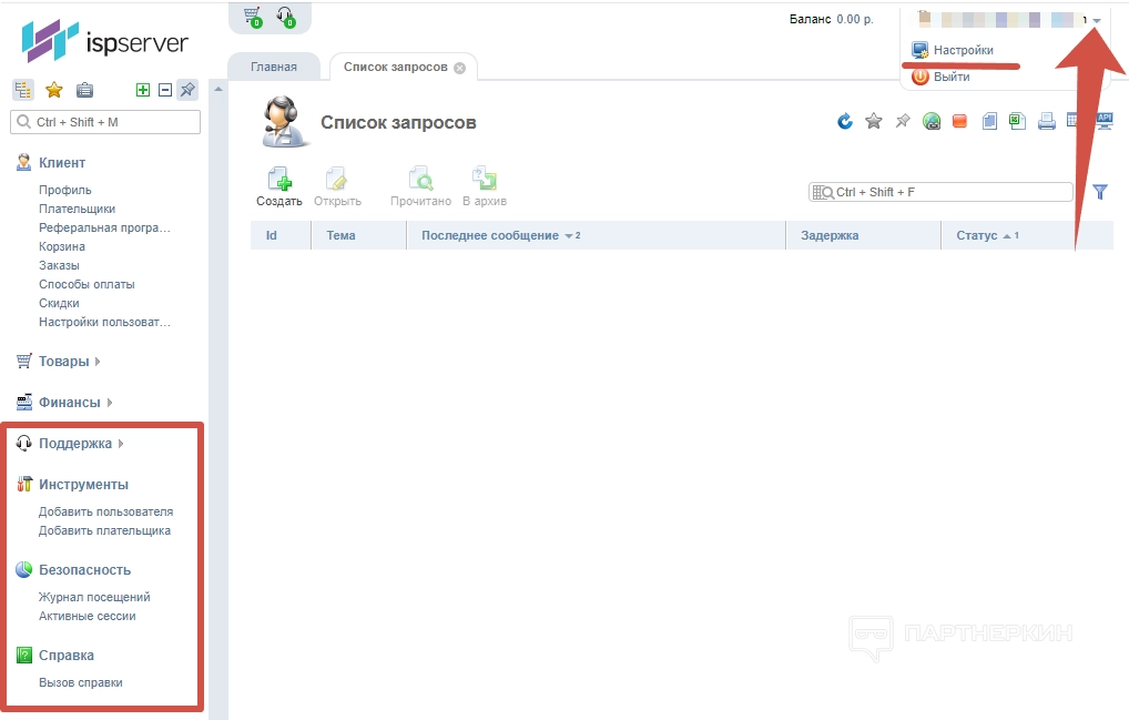 - Поддержка – это для связи с представителями сервиса. В разделе и есть вкладка «Запросы», с помощью которой вы и будете поддерживать связь.