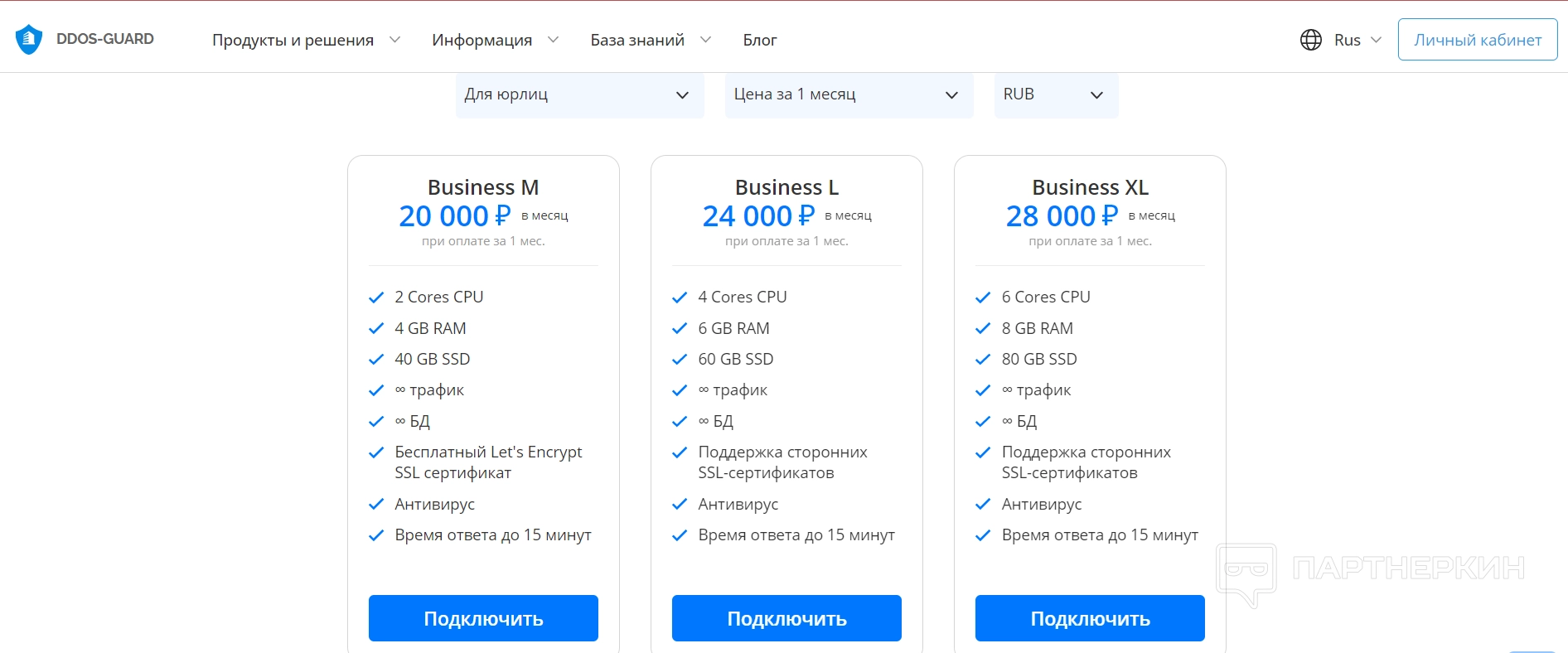 Аренда хостинга — на сервисе можно арендовать и хостинг, который поставляется вместе с защитой от атак. Услуга рассчитана как на физлиц, так и на юрлиц, поэтому условия для каждого будут разные в ценовом плане. Например, самый простой тариф физлицу обойдется в 3 000 рублей, а юрлицу — 20 000 рублей.