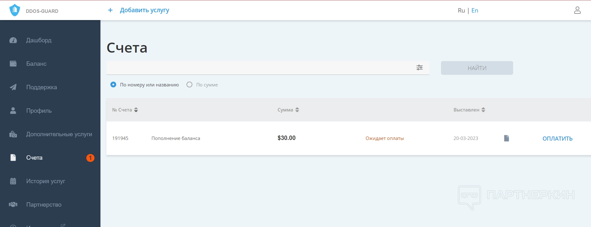 Счета — в данном разделе предоставляется информация обо всех счетах, которые создавались на сервисе. При этом список будет включать счета, которые еще не оплатили, и оплаченные счета.
