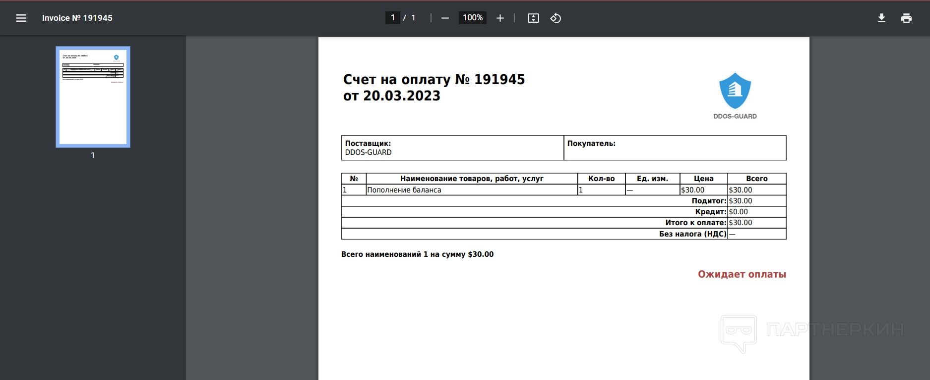 Если нажать в таблице на значок листа, то система перебросит в документ — там будет представлен сам счет и его подробности. Документ можно быстро распечатать или скачать по необходимости.