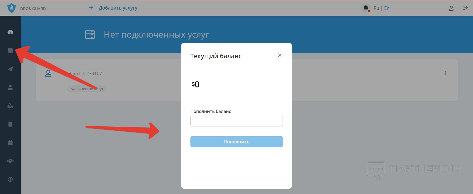 Текущий баланс — если нажать на иконку этого раздела, то перед пользователем появится окно, в котором будет отображаться настоящий баланс. Если необходимо внести средства, достаточно ввести сумму в поле и нажать на кнопку «Пополнить».