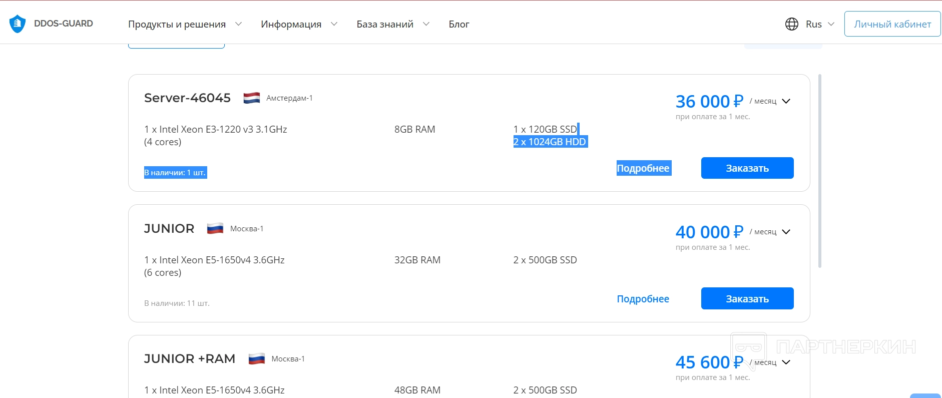 Аренда выделенного сервера — сервис предоставляет возможность аренды выделенного сервера со встроенной защитой от всех типов DDoS-атак. Выделенные серверы доступны в Амстердаме и Москве. При этом можно заказать индивидуальную услугу, и тогда специалисты сервиса подготовят нужный сервер по указанной конфигурации.