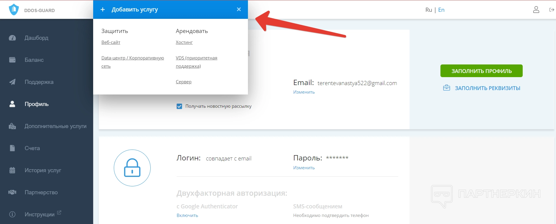 Партнерство — этот раздел включает информацию о партнерской программе. Суть ее в том, что пользователь разместит на своих ресурсах информационный баннер сервиса, и если люди будут по нему кликать, регистрировать на платформе и заказывать услугу, то от каждого реферала можно будет получать по 2% от их затрат.