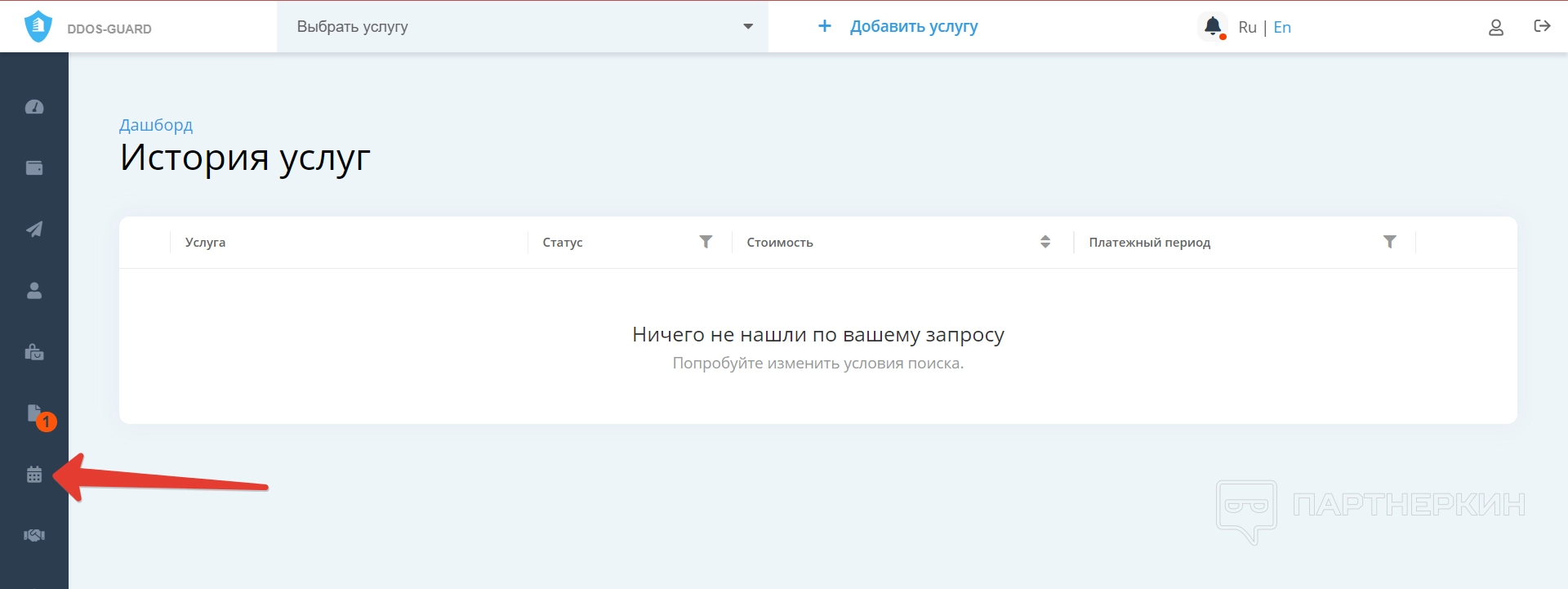 История услуг — в этом разделе представляют все услуги, которые пользователь оформлял на данном сервисе. Можно просматривать их состояние, чтобы не пропустить период продления, а также дату заказа, само наименование, стоимость и платежный период.