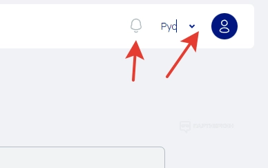 В верхнем правом углу есть переключатель для выбора языков. На момент написания статьи система поддерживала английский, русский и украинский. Также рядом находится значок со звоночком, представляющий собой центр уведомлений.