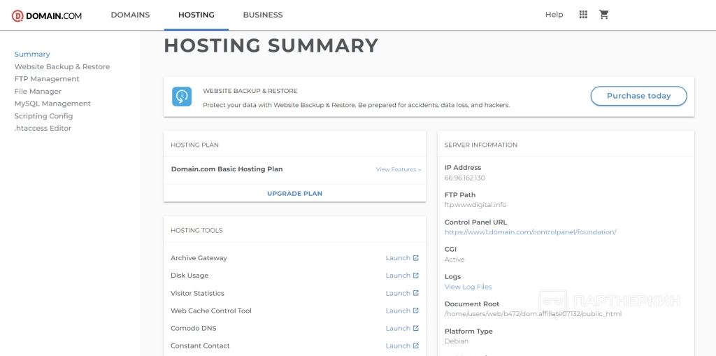 - FTP Management – работа с FTP-доступом: аккаунты, пароли и прочее.;